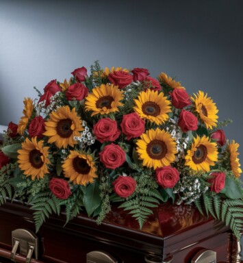Ramo floral del cofre ” girasoles y rosas rojas”