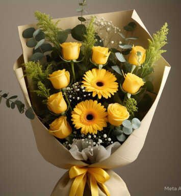 Ramo Floral del Cofre “lirios amarillos y rosas blancas”